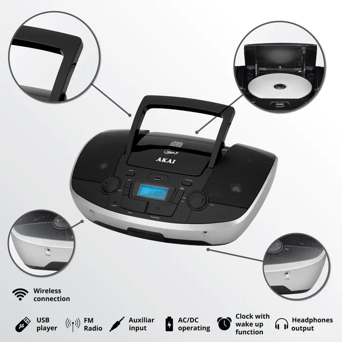 Cu un design clasic, în culoare neagră elegantă, și funcții multiple, Akai APRC‑108 este alegerea perfectă pentru cei care doresc un player simplu, fiabil și complet.